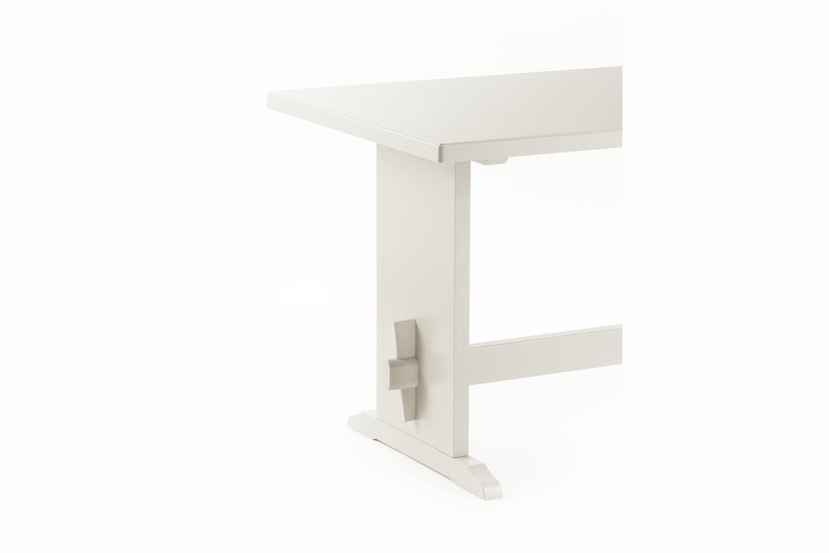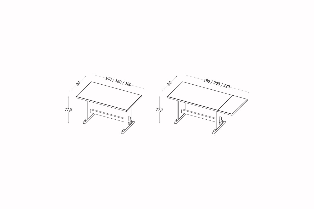 Veneered fixed table. Possibility of requesting a separate extension with bayonet coupling.