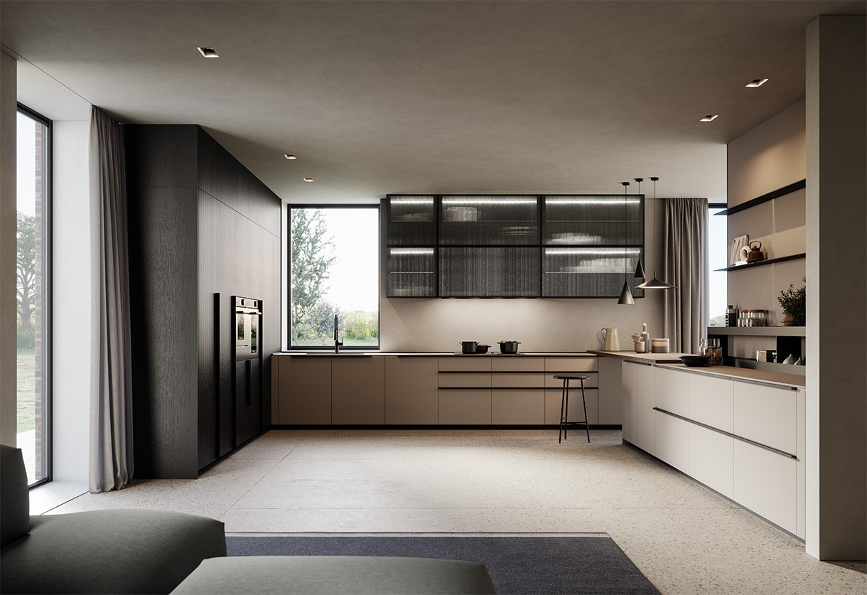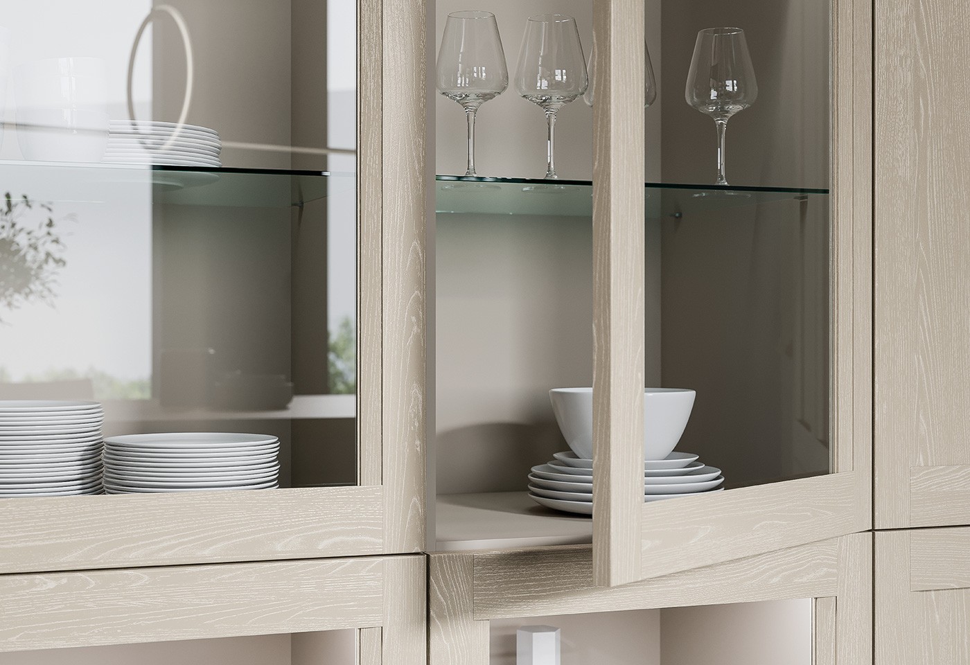 Frida Classic is a highly versatile kitchen, as it offers countless finishes such as matte lacquered, open pore lacquered, pickled or wood finishes and dedicated furnishing accessories. You can choose from metal supports for shelves, slats and an original peninsula support to customise the kitchen. The frame door is available in solid ash with a special integrated handle grip. Frida Classic allows a free choice with dedicated furnishing accessories and various finishes. Find out more, look at the following solutions.