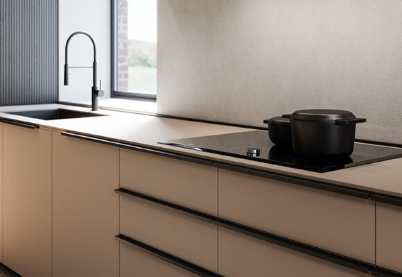 A horizontal or vertical incision occupying the entire width or length of the door with the handle profile inserted. The model’s distinctive element, it can be personalised by varying the patterns and light-and-shade effects, according to the designer’s imagination and the customer’s taste. The Tratto_10 door and handle are an integral part of the Gaia range. The former because it is coated with recycled PET, the latter because it is made of 100% recyclable aluminium.